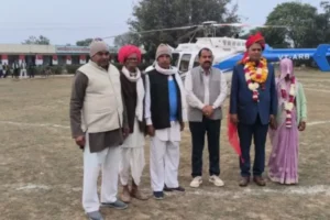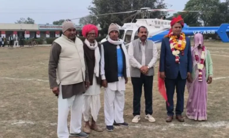 Retirement को बनाया यादगार: हेलीकॉप्टर से घर पहुंचे वरिष्ठ पशुधन अधिकारी, गांव में देखने उमड़ी भीड़