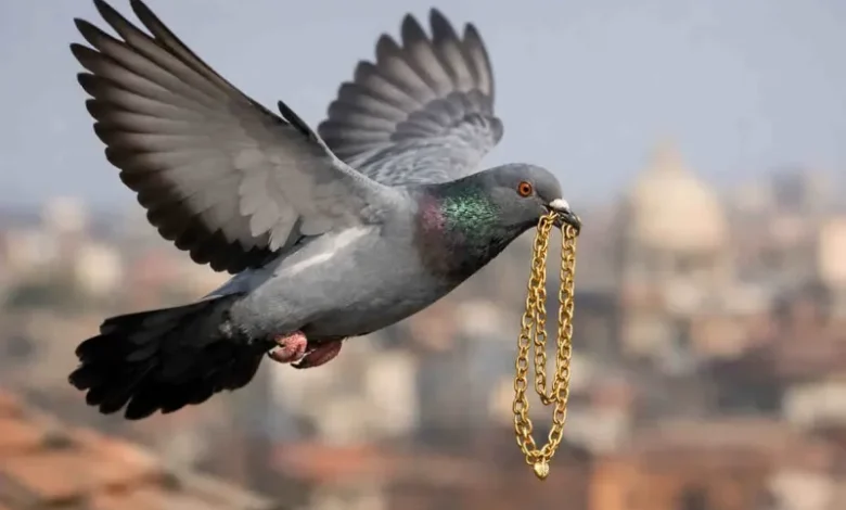 व्यापारी कबूतर को पकड़ने के लिए छत पर पहुंचे, लेकिन उड़ गया। उड़ान भरते समय उसके मुंह से छूटकर चेन छत पर गिर गई। काफी तलाशने के बाद चेन सुरक्षित मिल गई।